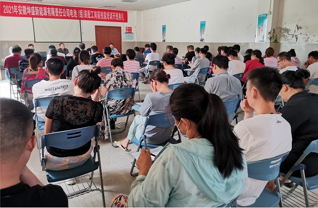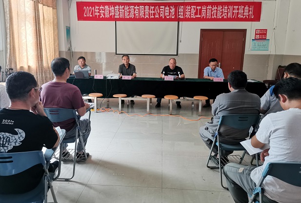 安徽坤盛新能源有限責(zé)任公司鉛酸蓄電池制造工初級崗前技能培訓(xùn)開班典禮,202193下午15時(shí)安徽坤盛公司培訓(xùn)室隆重舉行。