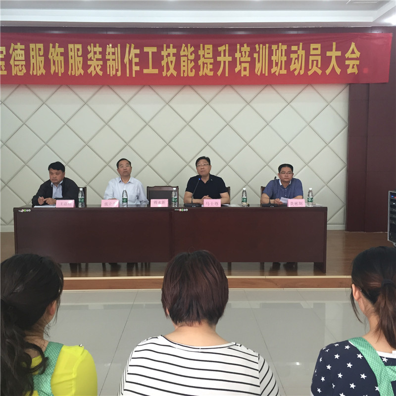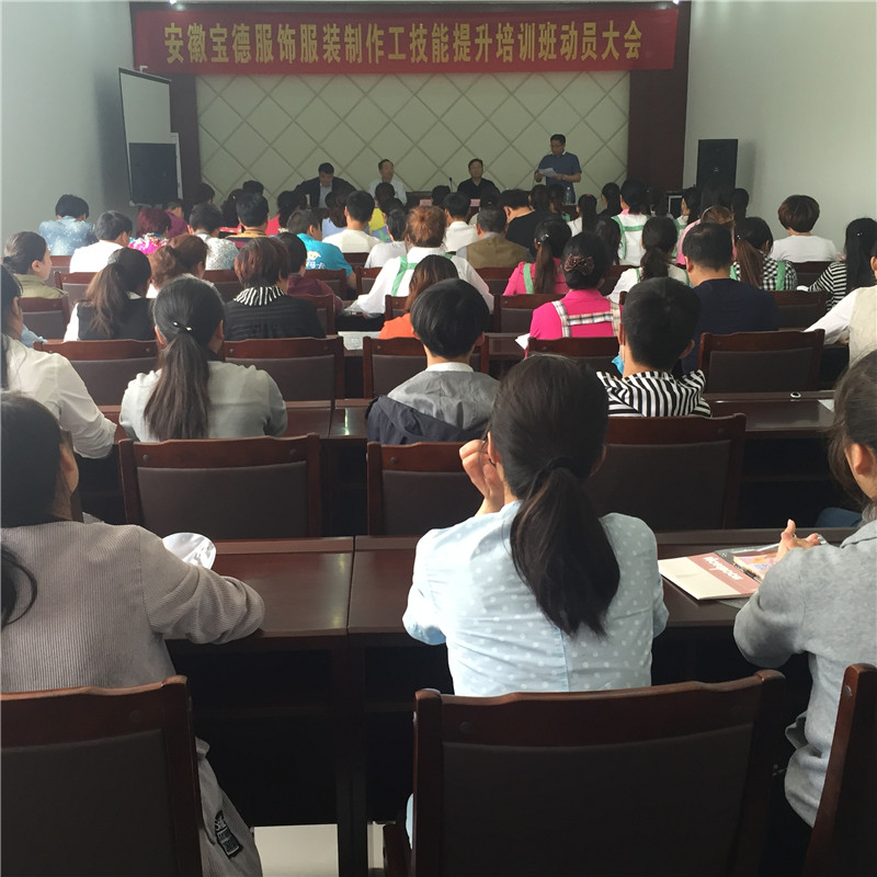2016年5月20日在安徽寶德服飾有限公司培訓教室隆重舉行了服裝制作工(中級)技能提升培訓開班典禮。此次開班典禮由寶德服飾廠長龔建明主持,寶德服飾總經(jīng)理馬士尊做了開班動員報告;我校首席專家、研究員張立今校長、綜合培訓部王忍存部長出席會議并做了發(fā)言。