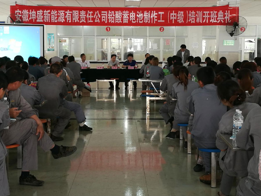 在我校與坤盛公司的相關(guān)人員的充分合作下,安徽坤盛新能源有限責任公司鉛酸蓄電池生產(chǎn)工技能提升培訓開班動員大會典禮于2018年5月17日上午10點順利召開。