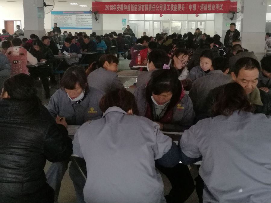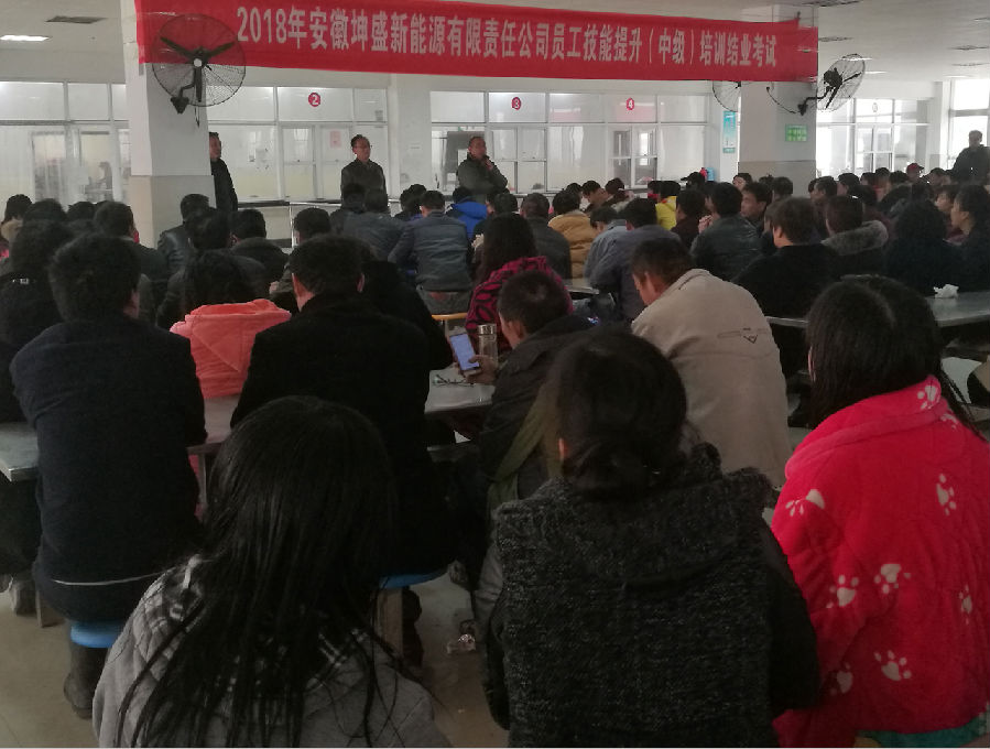 2018年11月21日下午,安徽坤盛新能源有限責(zé)任公司鉛酸蓄電池制作工技能提升培訓(xùn)結(jié)業(yè)考試在坤盛公司舉行,坤盛公司馬勝利廠長、環(huán)安部趙永鋒部長、人力資源部趙珊珊部長親臨考場督查。