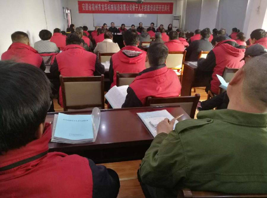 為了深入貫徹安徽省《關(guān)于進(jìn)一步加強(qiáng)企業(yè)人才工作的意見》和宿州市《關(guān)于在全市重點(diǎn)民營企業(yè)加強(qiáng)人才服務(wù)工作的通知》及《宿州市開展企業(yè)需求實(shí)用人才培訓(xùn)實(shí)施的意見》,2018年12月13日下午,安徽省宿州市龍華機(jī)械制造有限公司骨干人才技能培訓(xùn)班開班典禮,在安徽省宿州市龍華機(jī)械制造有限公司會議室隆重召開。