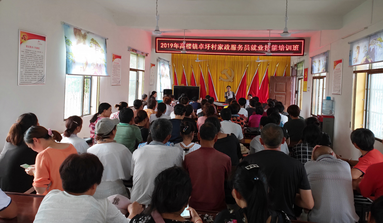 2019年7月23日下午,卓圩村家政服務(wù)員就業(yè)技能培訓(xùn)班結(jié)業(yè)考試在高樓鎮(zhèn)卓圩村大隊(duì)部舉行。