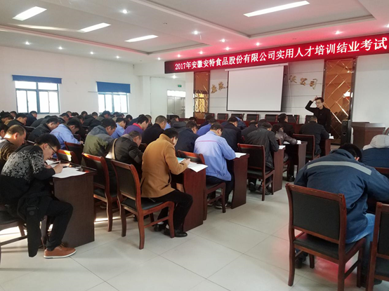 2017年12月9日上午,我們東潤(rùn)職業(yè)培訓(xùn)學(xué)校承辦的安徽安特食品股份有限公司班組長(zhǎng)以上管理人才培訓(xùn)班結(jié)業(yè)考試在公司培訓(xùn)教室隆重舉行,參加的有東潤(rùn)職業(yè)培訓(xùn)學(xué)校綜合培訓(xùn)部以及參與培訓(xùn)的80名安徽安特食品股份有限公司學(xué)員。