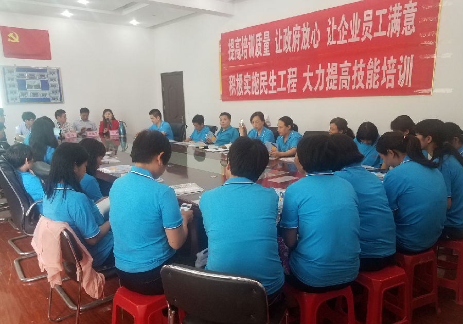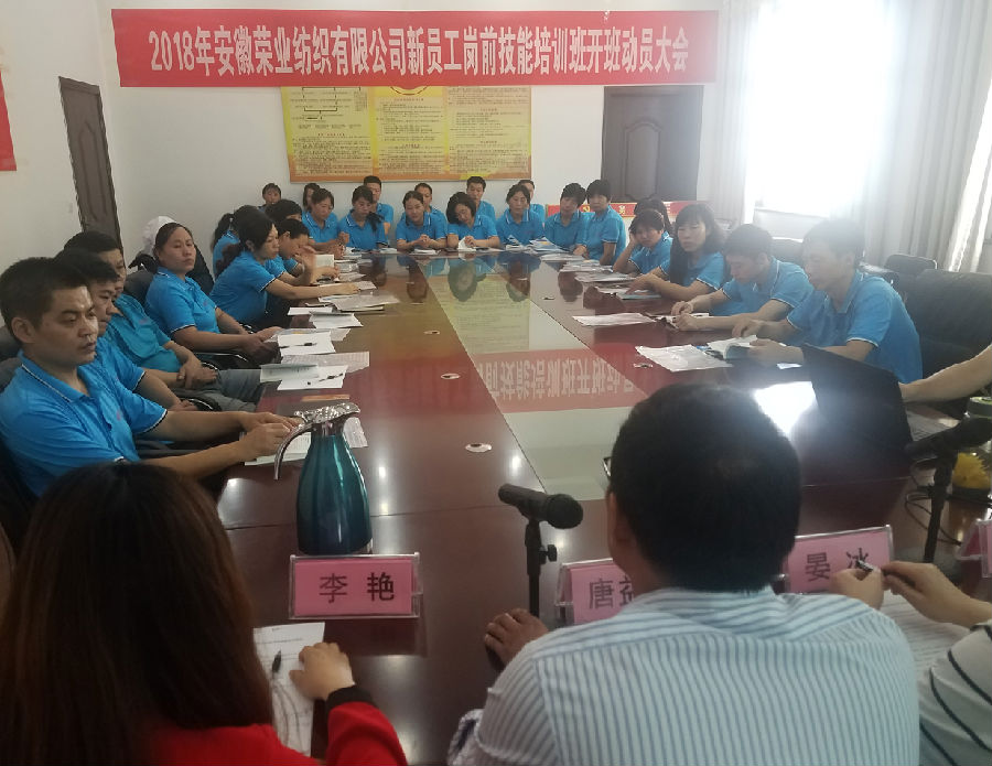 為了加大對(duì)企業(yè)員工培訓(xùn)力度,進(jìn)一步落實(shí)民生工程政策,實(shí)施人才戰(zhàn)略,加快推動(dòng)企業(yè)發(fā)展。安徽榮業(yè)紡織有限公司員工(初級(jí))技能培訓(xùn)開班動(dòng)員大會(huì)于2018531日上午8時(shí)30榮業(yè)公司培訓(xùn)室隆重舉行。