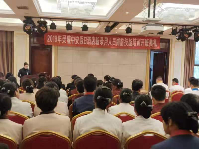 為了進一步推動企業(yè)發(fā)展,落實民生工程政策,在靈璧縣人力資源保障局領導的指導下,我校組織的靈璧中安假日酒店有限公司餐廳服務員(初級)崗前技能培訓班開班典禮于2019年11月12日下午15時在中安酒店隆重舉行。
